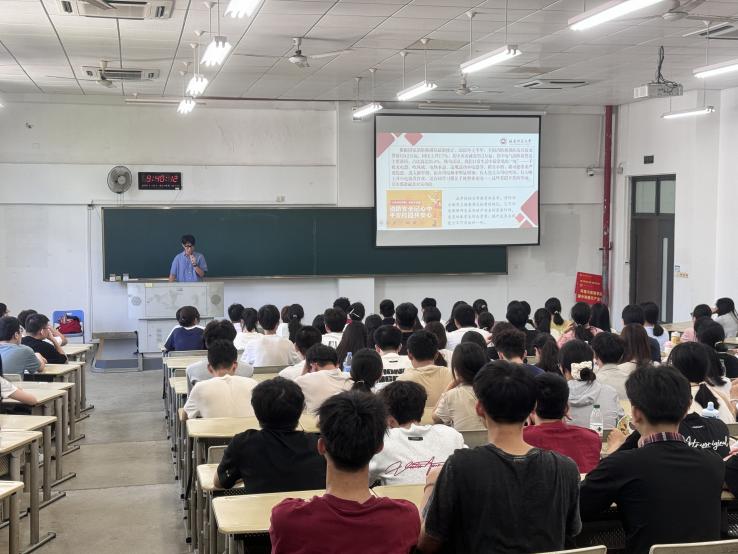 郑智弘老师围绕“消防安全、交通安全、实验安全与网络安全”四个方面展开讲解。他着重强调宿舍规范用电以防范火灾、遵守校园交通规则,结合工科专业特性明确实验室安全操作要点,同时提醒同学们重视网络边界,共同维护清朗网络环境,全方位强化新生安全。