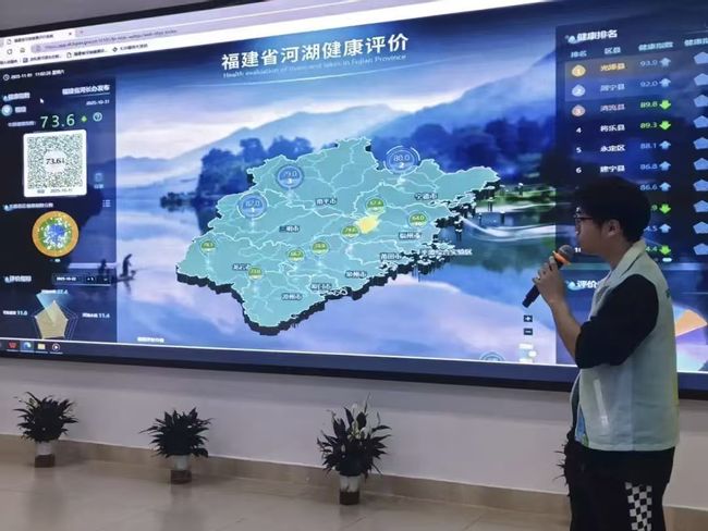科技赋能环节的智慧平台演示,令同学们印象深刻。工作人员实时操作河湖健康评价智慧化平台,展示了其依托大数据、物联网技术,实现对河湖多项指标的动态监测与智能分析的全过程。支部成员专注观看,深切体会到科技为生态保护带来的精准与高效。柯瑜洁同学在交流中谈到:“过去总觉得生态保护偏重经验,今天才发现,技术赋能让保护工作更科学、更系统,也让我们对环境工程的专业前景充满信心。”