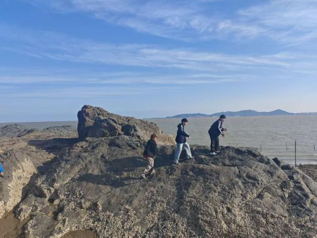 活动中,参与人员分工协作,分别承担了物种影像拍摄、生态数据记录和修复技术细节咨询等工作。第二团支部徐燚同学表示,过去仅在课本上了解湿地的生态功能,通过实地观察秋茄树的呼吸根、招潮蟹的栖息洞等具体现象,对“湿地是生态缓冲带”这一概念有了更直观的认识。围绕互花米草治理的实际案例,成员们结合资源循环专业背景,进一步探讨了将入侵物种进行资源化利用的可行性,体现了研学活动与专业思考的结合。