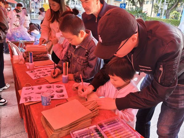 走进活动现场,“旧物新生,巧手创造”摊位映入眼帘,“环保袋彩绘”成为最受欢迎的环节。支部成员耐心指导、分发材料,讲解环保知识,传递“物尽其用、循环不息”的生活理念。孩子们在支部成员的引导下,手持画笔,在空白的牛皮纸袋上描绘出心中的绿色地球、可爱的回收符号、生机勃勃的自然景象……每一笔色彩,都是他们对环保的理解与表达。