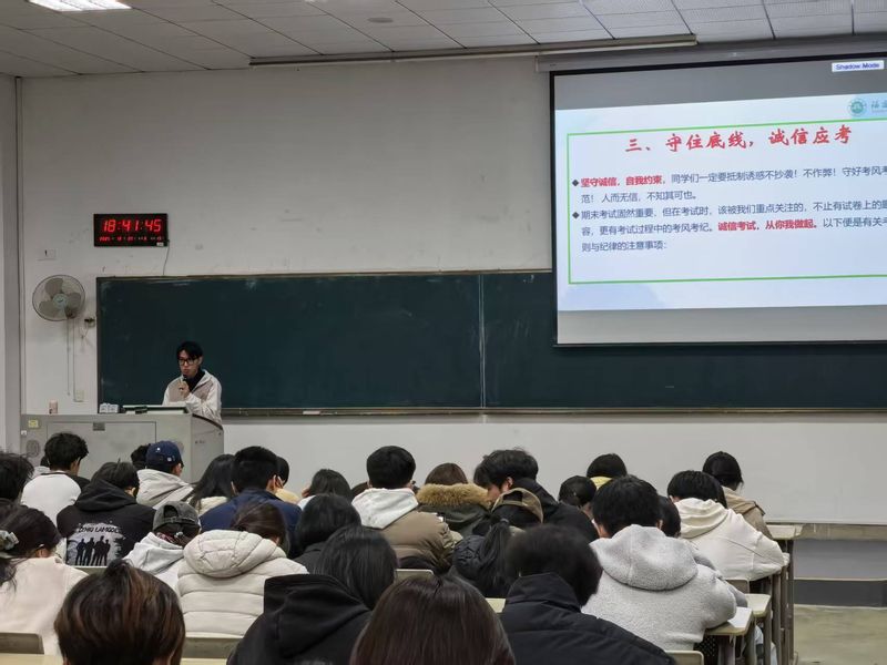 各年级辅导员围绕《高等学校学生行为准则》《福建师范大学学生纪律处分规定》《本科学生考试违规认定办法》等规章制度,组织学生集中学习与案例研讨。通过剖析真实案例,深入阐释诚信考试对个人学业发展、品德修养与长远成长的重要价值,明确说明考试违纪行为可能带来的纪律处分、学业影响及对个人信誉的长远损害,引导学生深刻认识诚信不仅是对社会规范的基本遵循,更是当代大学生应自觉坚守的道德底线,从而主动筑牢思想防线,坚决抵制各类违纪作弊行为。
