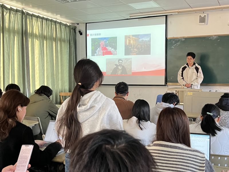 为让理论学习更具趣味性和参与感,活动设置“听歌识曲”“图片猜猜猜”两大互动游戏环节,内容紧密围绕党史知识、党的二十届四中全会要点及“十五五”规划核心内容展开。在“听歌识曲”环节,《没有共产党就没有新中国》《不忘初心》等经典红歌旋律响起,同学们迅速抢答,在熟悉的旋律中重温党史征程;“图片猜猜猜”环节则通过展示科技自立自强代表性成果、生态环境保护典型案例等图片,引导学生们联想“十五五”规划相关部署,现场答题声、欢呼声此起彼伏。“这种游戏化的学习方式太有意思了,原本有些抽象的政策要点,现在记得特别牢!”支部成员林思扬在答题后分享道,趣味互动让理论学习变得生动鲜活。