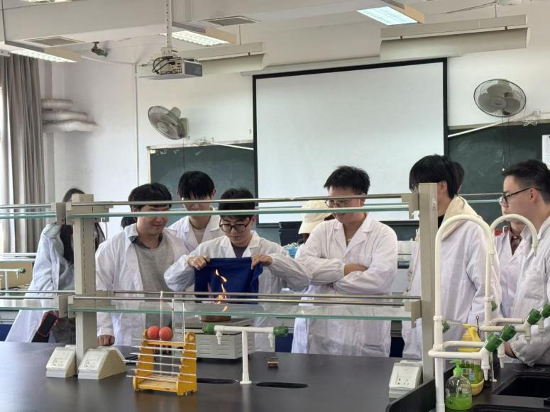 随后,同学们在老师的专业指导下轮番上阵,依次完成了四大应急场景的模拟处:置面对水浴锅起火,同学们临危不乱,迅速以湿布覆盖,利用窒息法消除火患;当电炉冒出火星,大家牢记“先断电、后灭火”的原则,果断切断电源并用湿布扑灭火源;在通风橱起火模拟中,同学们反应迅速,立即关闭通风装置、拉下橱门,防止火焰扩散。最后,全员进入应急疏散状态,俯身捂鼻,沿着安全通道快速、有序撤离,整个过程紧张有序、环环相扣。通过实景化模拟演练,进一步强化了同学们对突发事件全流程处置能力,确保在突发险情面前能够快速反应、科学处置、规范应对。