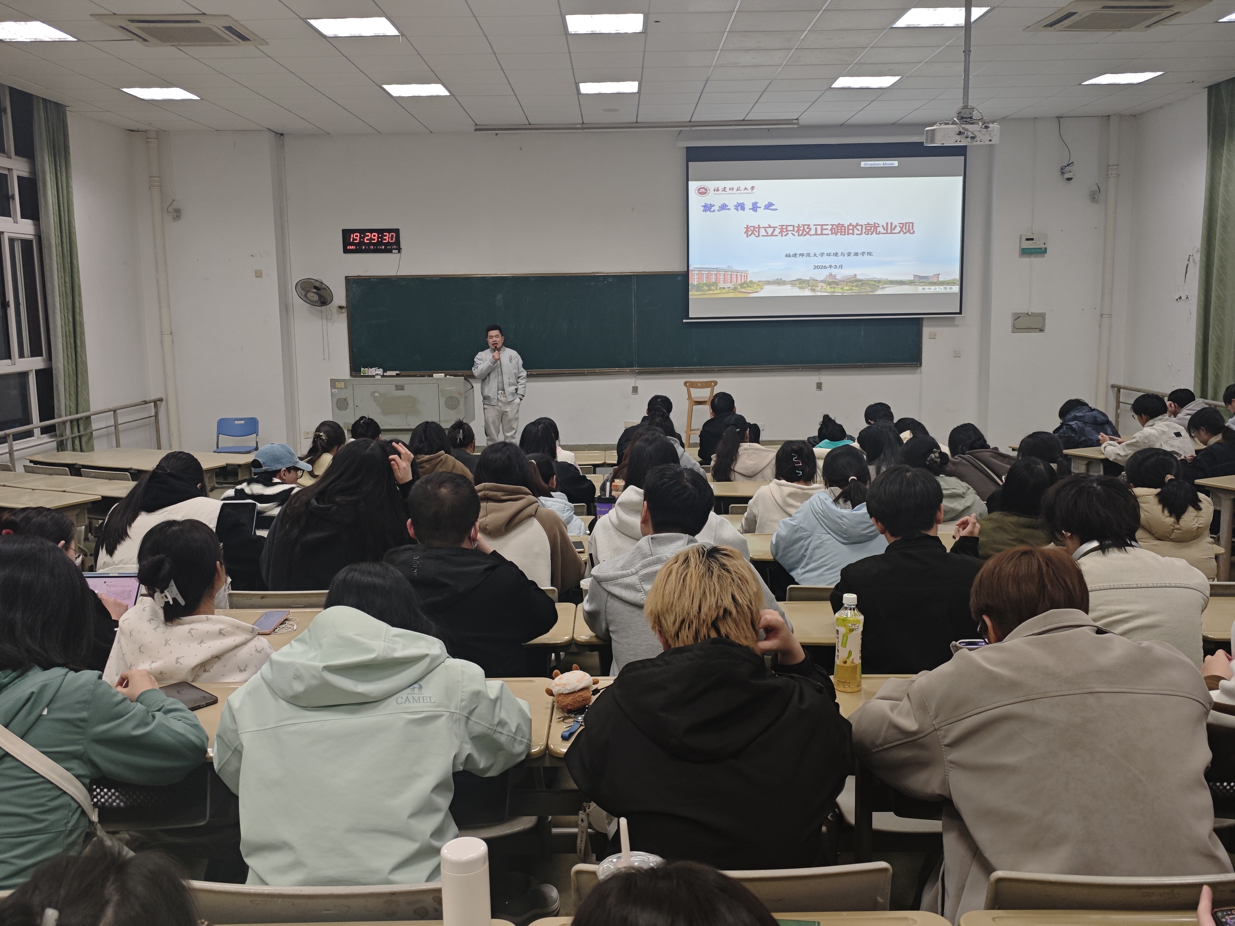 为引导2026届本科毕业生树立科学合理的就业观、择业观,明确就业方向,提升就业竞争力,3月29日,辅导员章忠老师在笃行1-212教室,为2022级本科生开展正确就业观专题教育讲座。