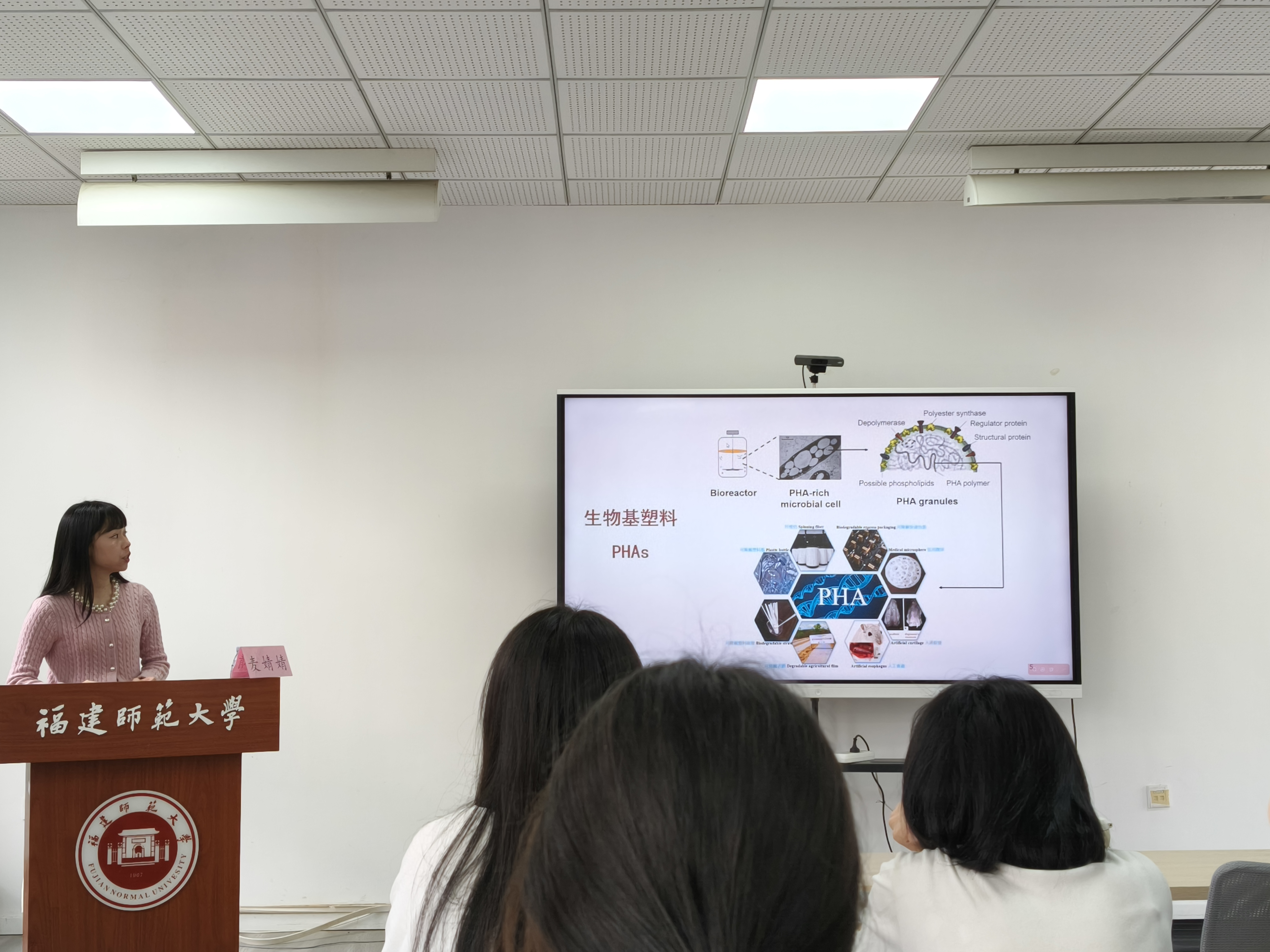 活动伊始,麦婧婧老师结合自身研学经历,分享了从集美大学本科阶段夯实专业基础、营造和睦班级氛围,到同济大学硕士阶段深耕科研方向、多次进行主研究方向实验,再赴澳大利亚昆士兰大学深造的成长历程。她以可生物降解塑料聚羟基烷酸酯(PHAs)的研究为例,生动介绍了专业领域的前沿动态与应用价值,让同学们直观感受资源循环学科的发展潜力。随后,麦老师围绕读研规划与科研启蒙、职业选择与就业方向、全面成长与身心健康三大核心要点展开讲解,细致解答了同学们关于本科就业、毕业选择及实习实践的疑问,为大家梳理了清晰的发展路径。现场互动积极,同学们在提问与交流中进一步明晰了自身定位。